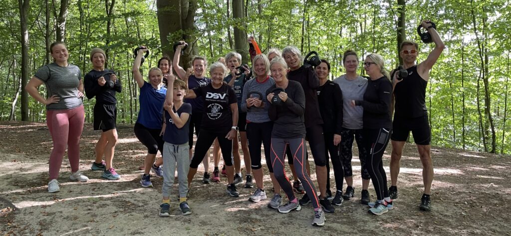 Vi træner i Rungsted Hegn og bruger naturen året rundt uanset vejret. Vi er seriøse med vores træning, men der er altid plads til snak og grin på holdet. Alle øvelser kan laves på flere niveauer, hvorfor alle kan være med uanset form. Vi har redskaber liggende i skoven – du skal blot medbringe dit gode humør, liggeunderlag og evt. et par handsker om vinteren og myggespray om sommeren.